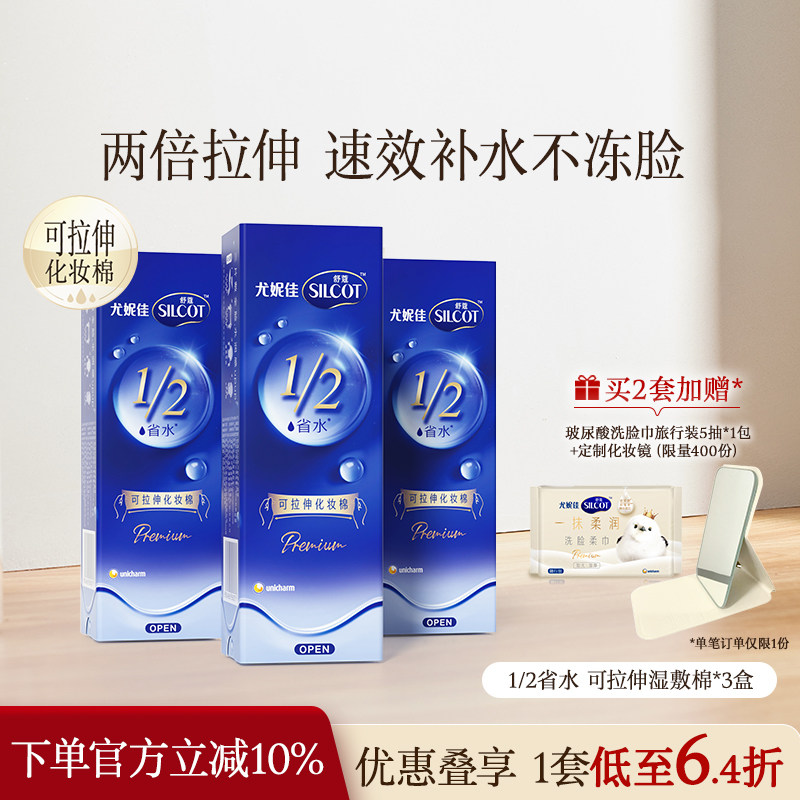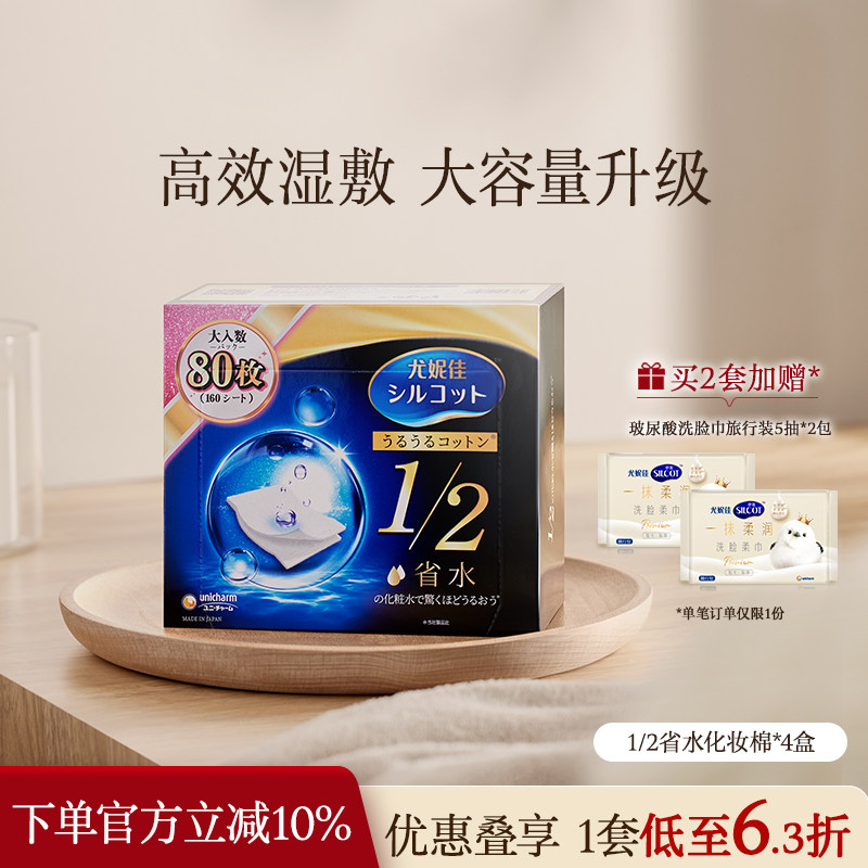 【邝玲玲同款】尤妮佳化妆棉舒蔻1/2省水化妆棉片敷脸卸妆棉80片