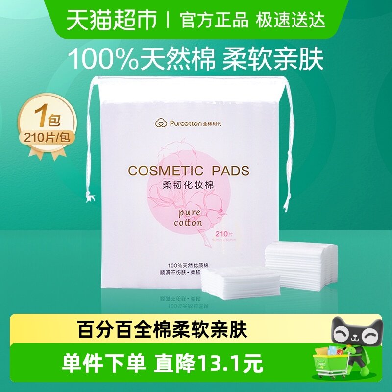全棉时代化妆棉卸妆棉纯棉脸部眼唇专用湿敷棉片厚款便携装210片