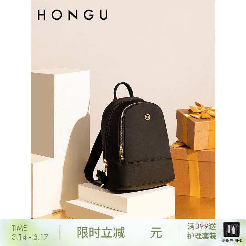 HONGU/红谷双肩包女背包简约背包轻便大容量旅行帆布中学生书包女