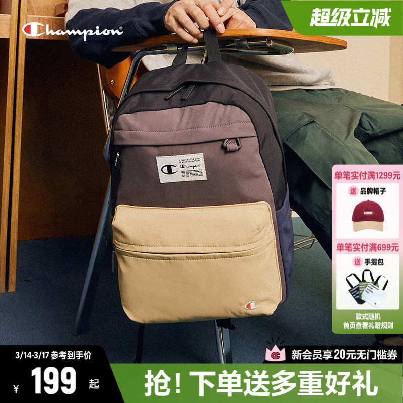 Champion冠军女士书包双肩包春季新款简约帆布双肩背包男初中学生