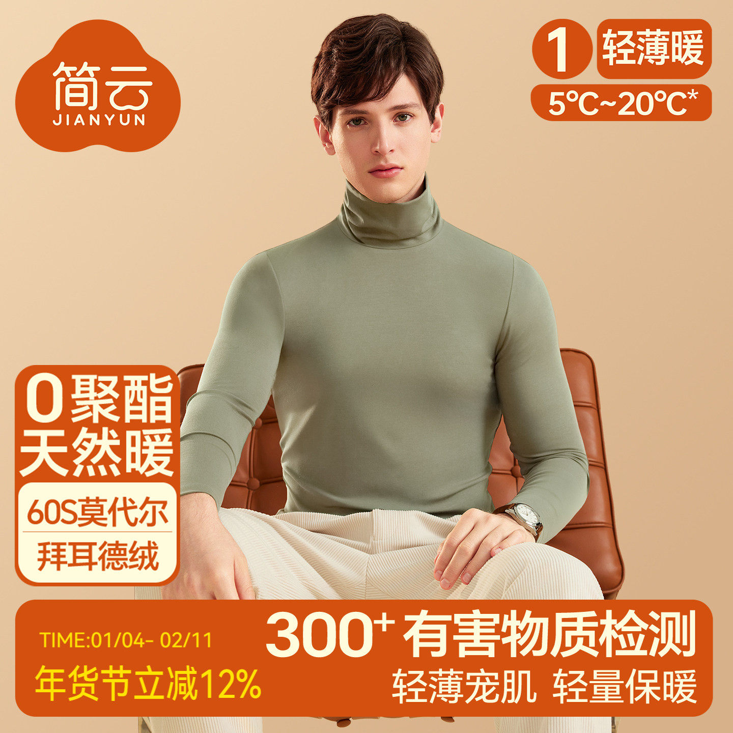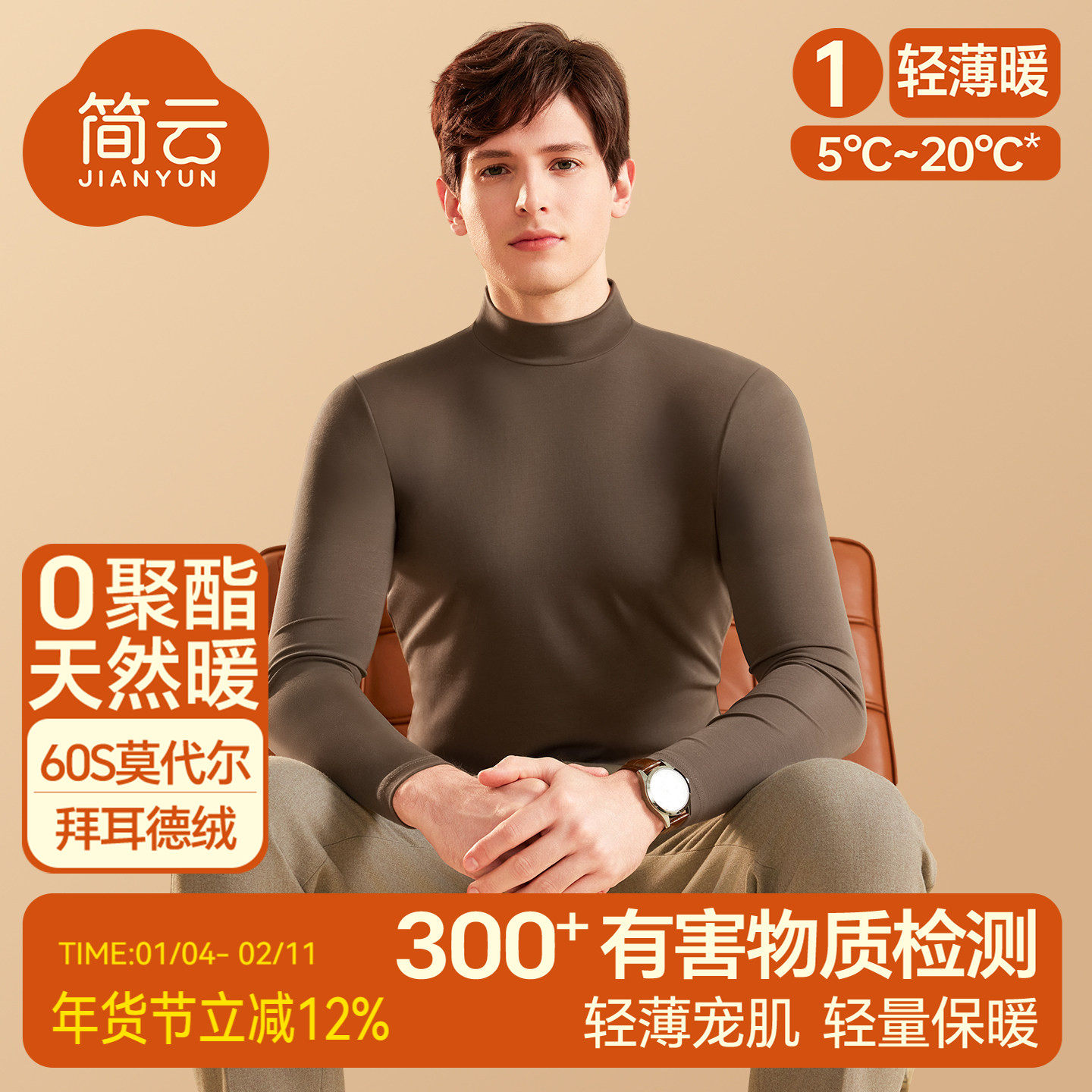简云莫代尔半高领打底衫男士内搭长袖t恤上衣薄款秋衣保暖内衣冬