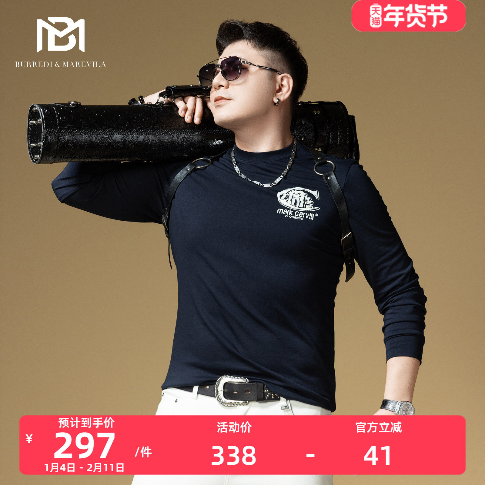 BM字母印花美式复古卫衣男2025新款潮牌莫代尔打底衫长袖男士上衣