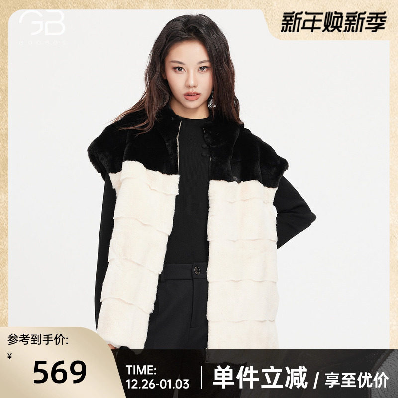谷邦拼色皮草背心马甲女2025冬季新款拼接设计感皮毛一体马夹外套