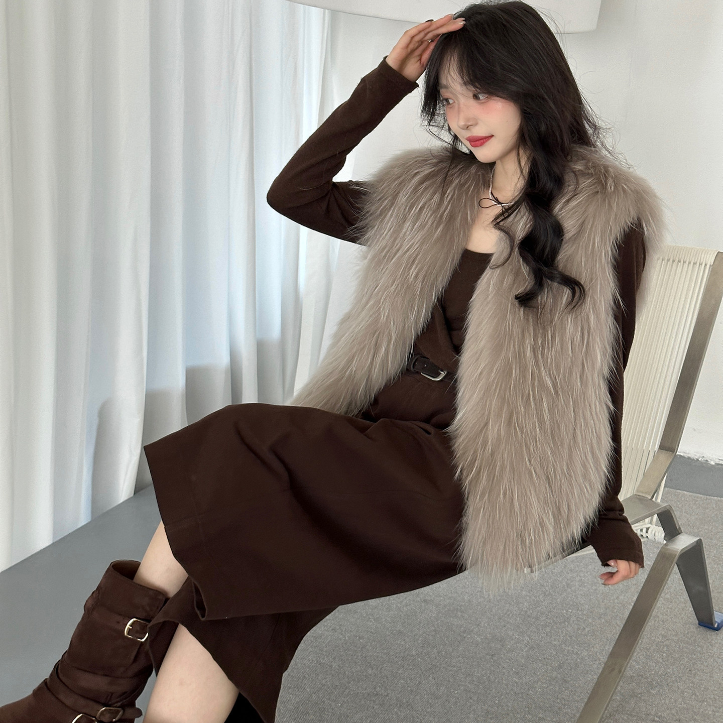 2025秋冬韩系双面编织貉子毛外套网红风皮草背心马甲甜美系外套潮