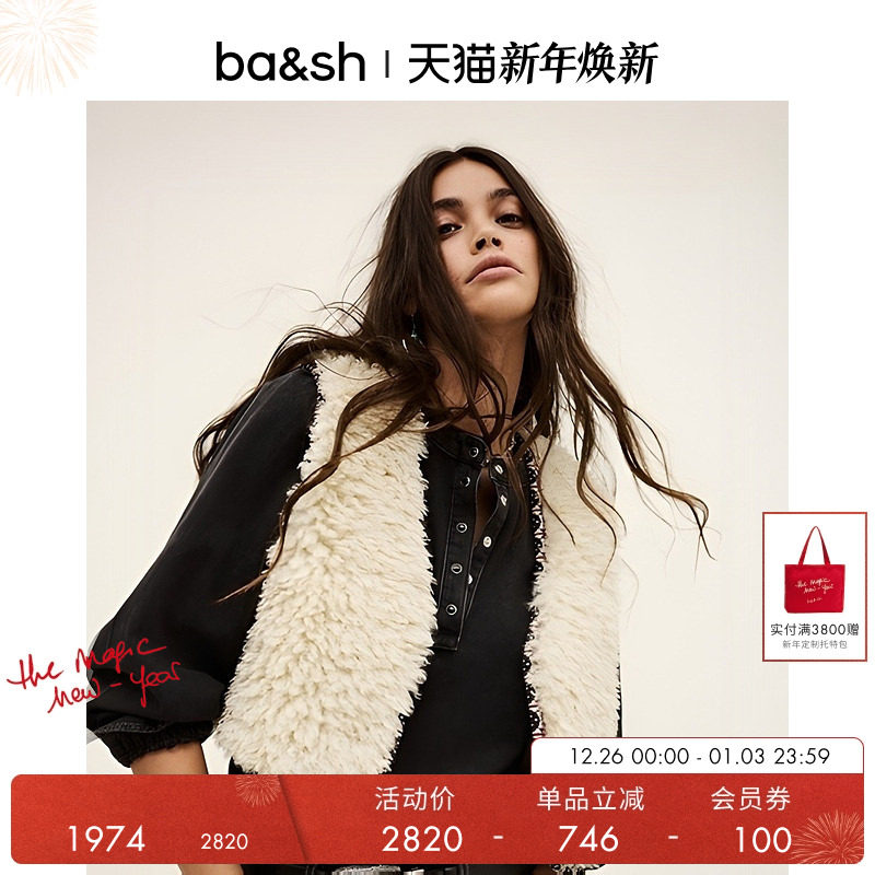 bash2025新款冬季法式温柔仿皮草背心马甲毛绒外套马夹1H25CELT