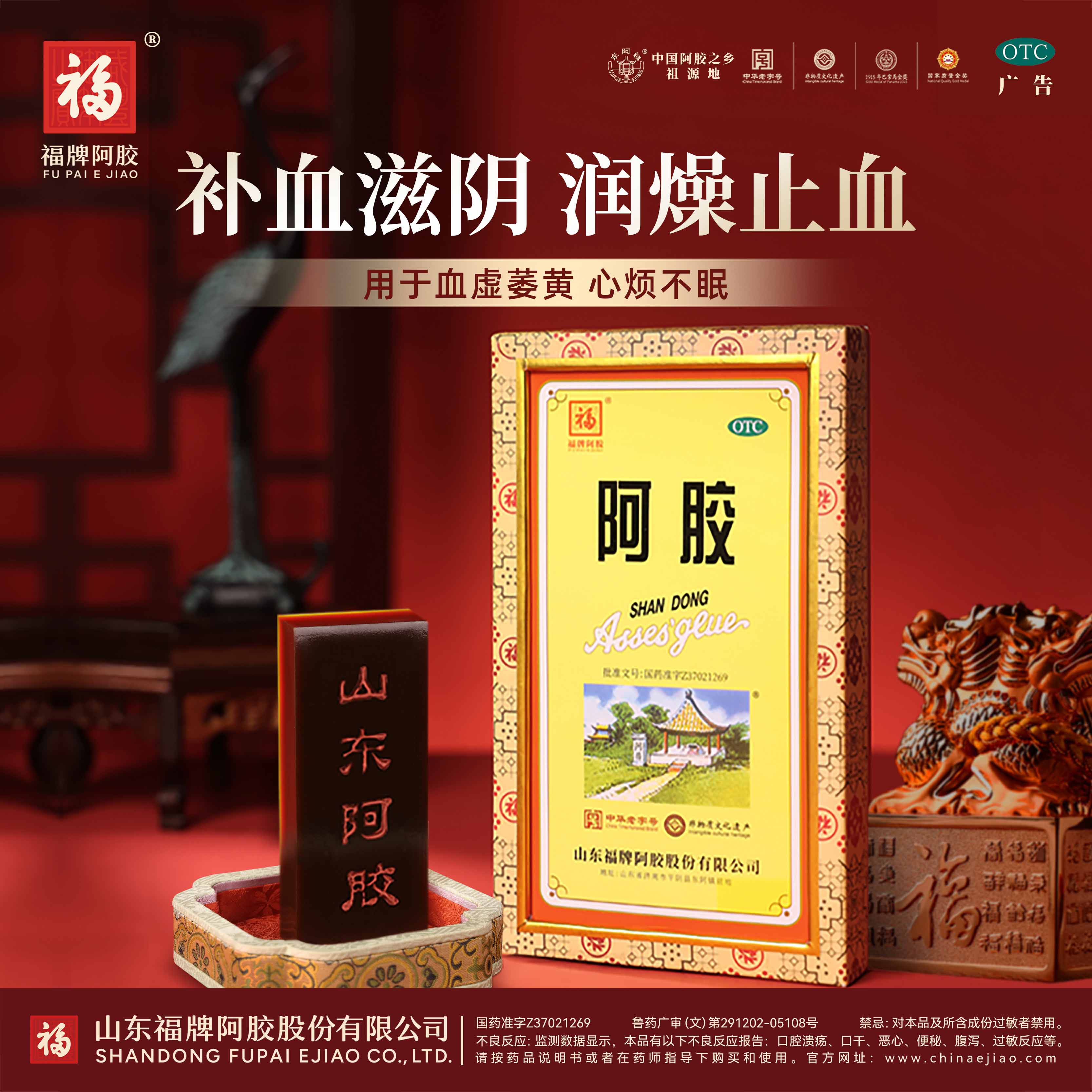 福牌阿胶块补气血养血500g补血阿胶块女官方正品旗舰店送礼盒
