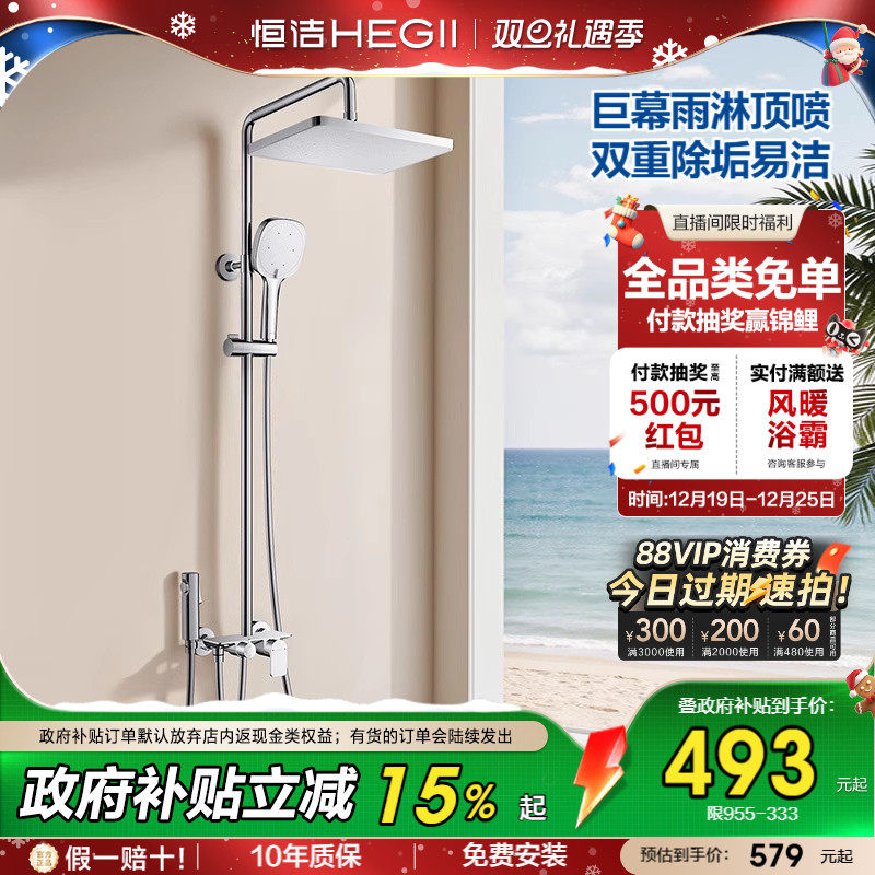 [直播间补贴]恒洁浴室沐浴器淋雨简约一体款花洒套装卫生间家用