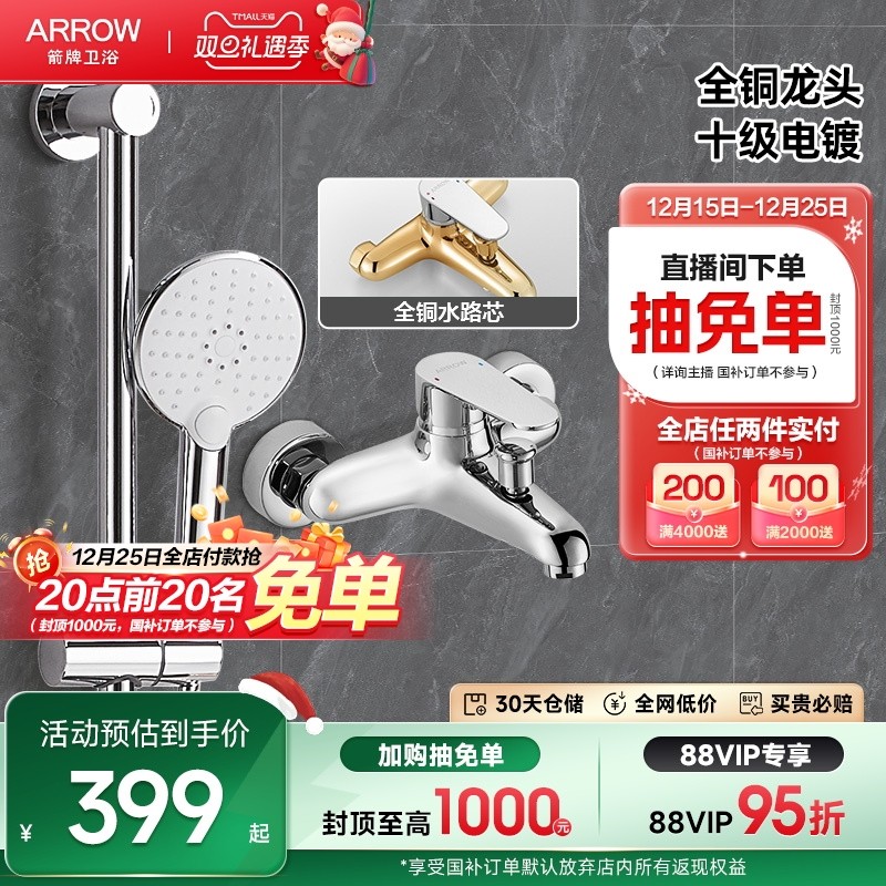 ARROW/箭牌增压花洒喷头家用浴室冲凉沐浴手持一键止水莲蓬头0