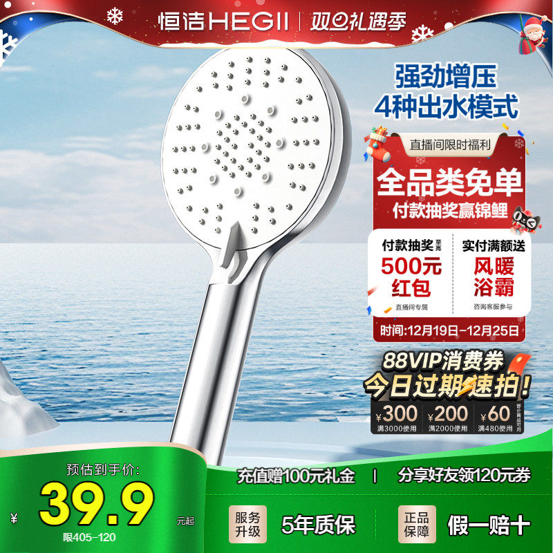 [直播间补贴]恒洁钢琴按键花洒套装淋浴器家用浴室卫生间除垢Y55