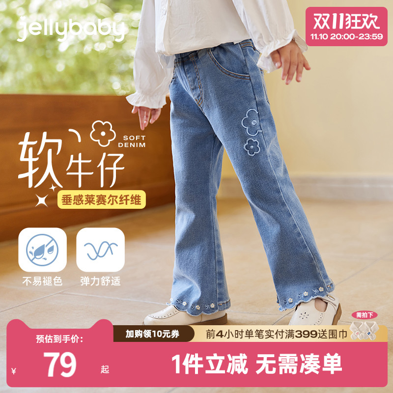 [抗菌]女童微喇软牛仔裤秋季2025新款女宝长裤儿童女孩喇叭休闲裤
