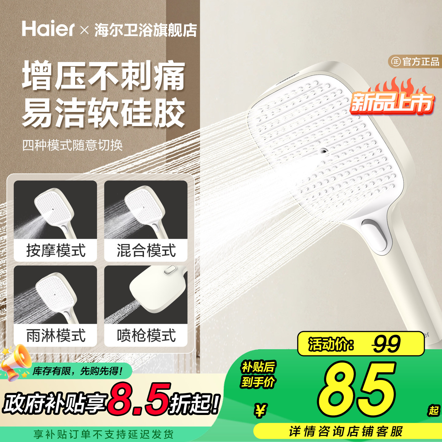 Haier/海尔大面板增压淋浴花洒喷头套装手持家用卫生间加压奶油风