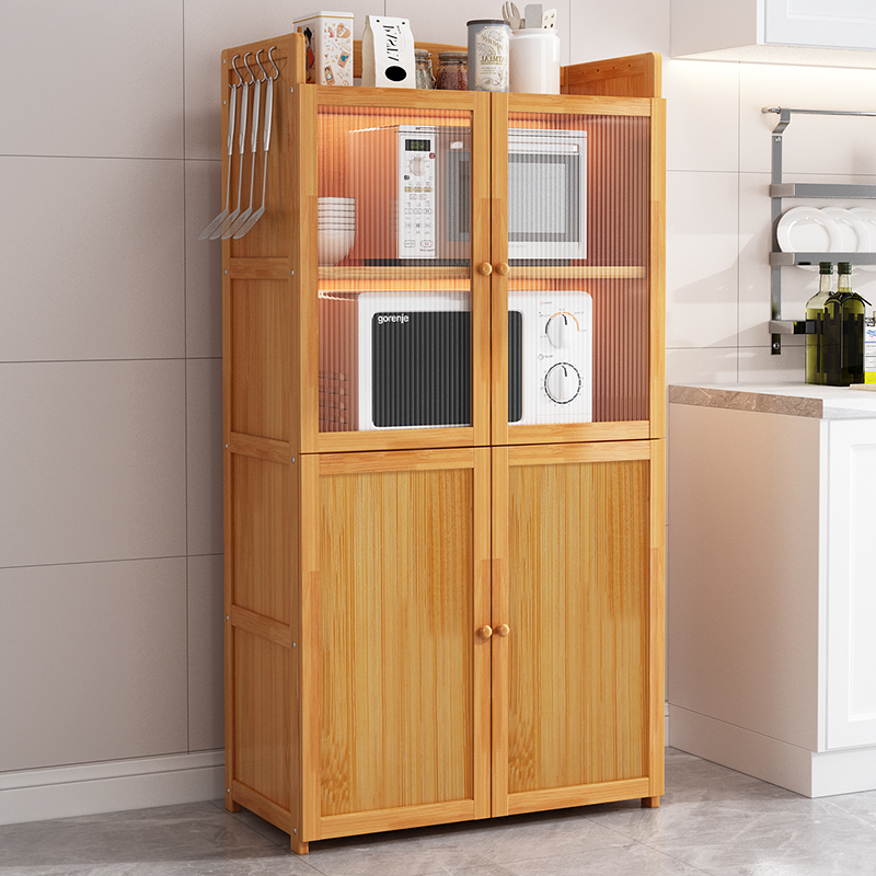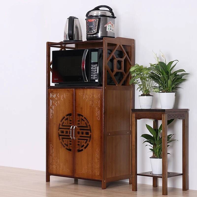 竹微波炉架厨房用品带门厨房置物架收纳架经济型家用实木橱柜碗柜