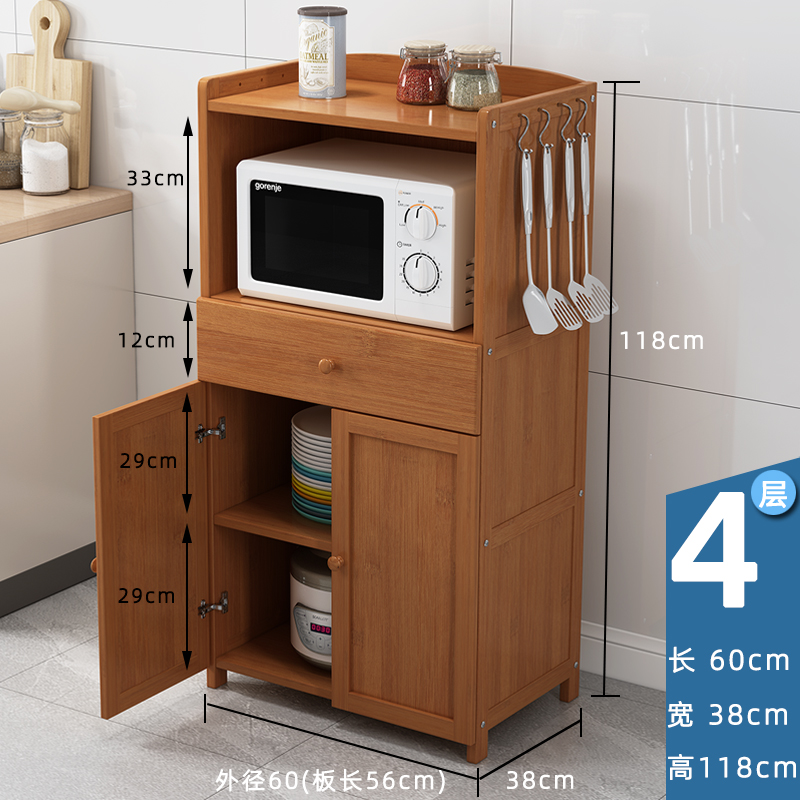 厨房置物架落地多层储物柜带门多功能收纳柜橱柜烤箱架竹微波炉架