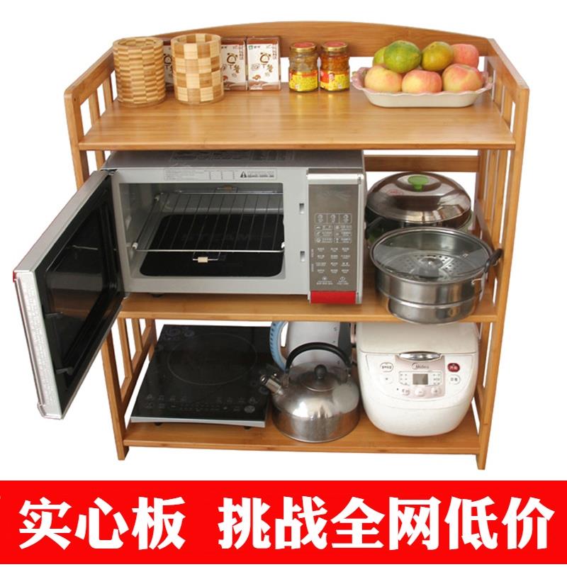 热销楠竹微波炉架子厨房置物架实木杂物架收纳架多层电器储物架小