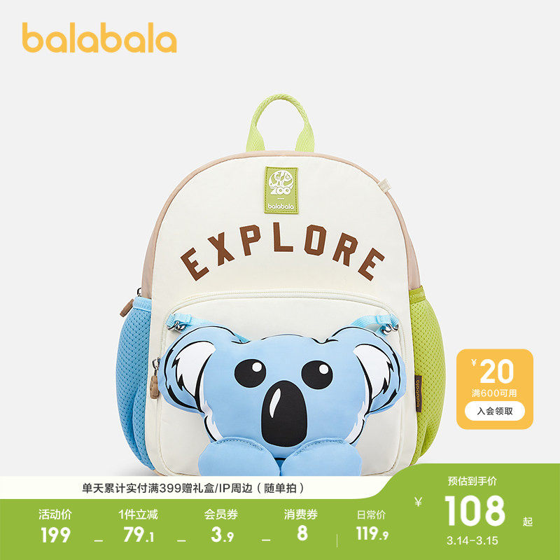 巴拉巴拉儿童双肩包男女童背包舒适卡通造型时尚可爱潮酷萌趣儿童