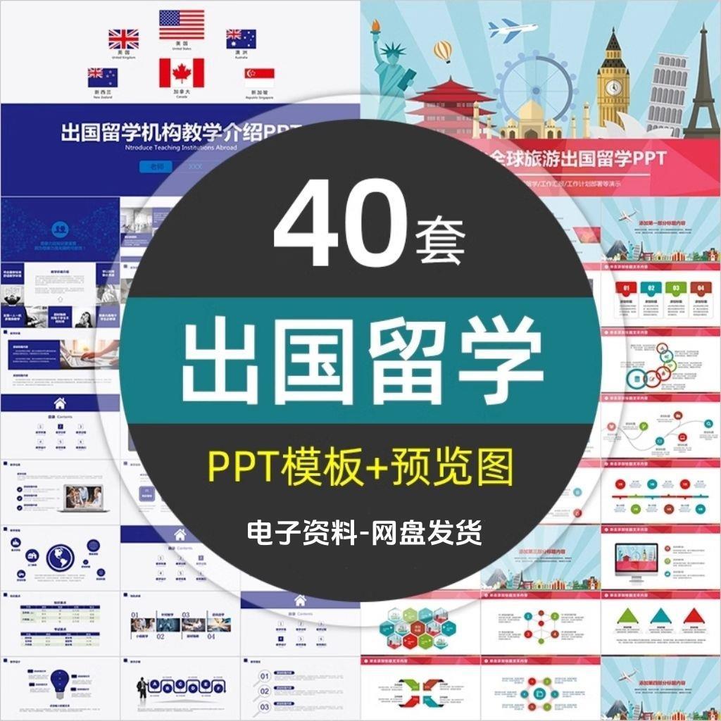 出国留学培训机构PPT模板教育中介公司招生介绍环球旅游国外读书