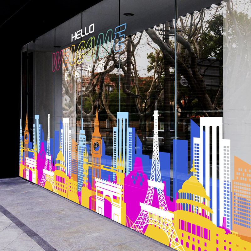 国际学校教室布置出国留学中介旅行社橱窗海报画无胶静电玻璃贴膜