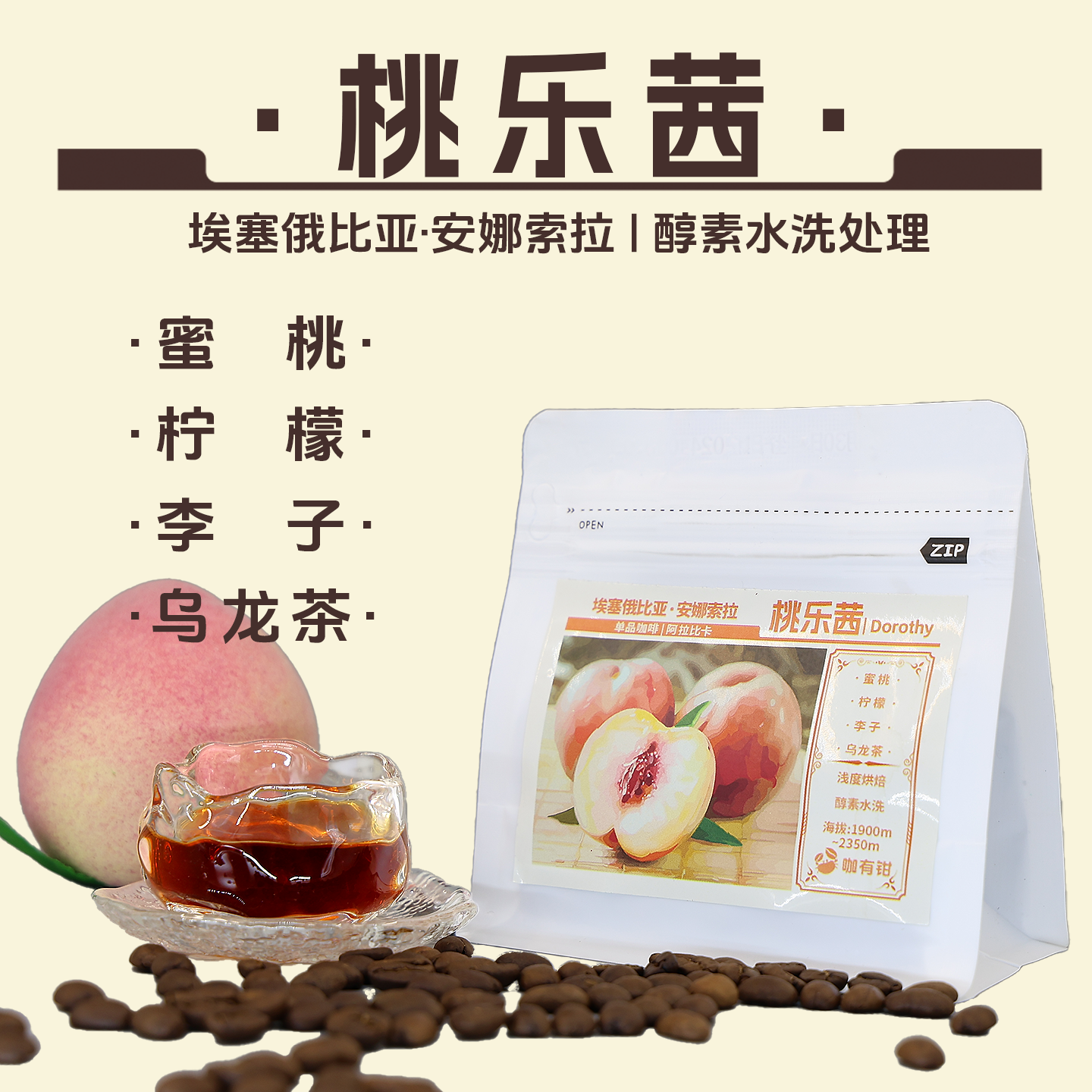 UcaCoffee桃乐茜咖啡豆白桃乌龙风味安娜索拉酵素水洗单品咖啡豆