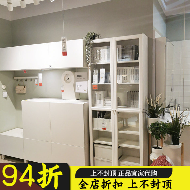 宜家国内代购毕利/奥克伯玻璃书柜展示柜书架现代简约落地置物架