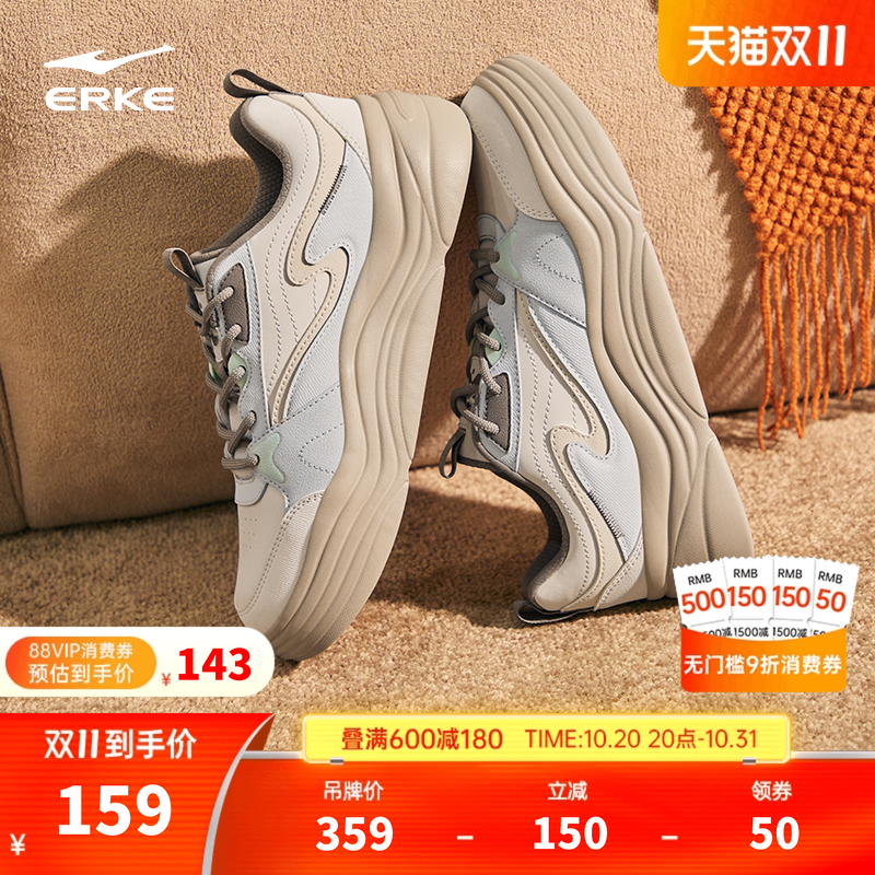 鸿星尔克男鞋秋季新款运动鞋革面休闲鞋厚底鞋轻便网面透气跑步鞋