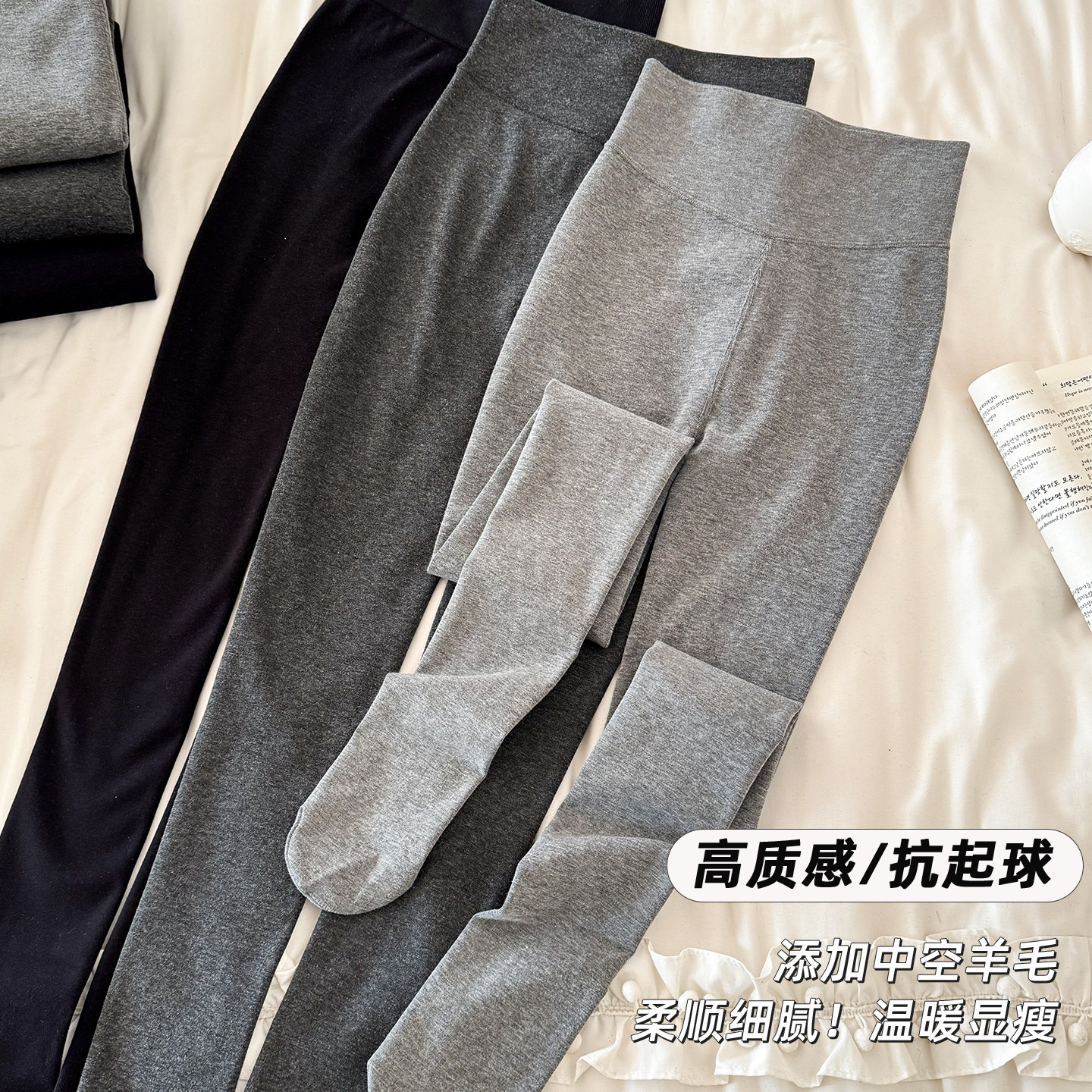 微压显瘦奶白色连裤袜春秋灰色打底裤女外穿2024新款秋冬加绒加厚