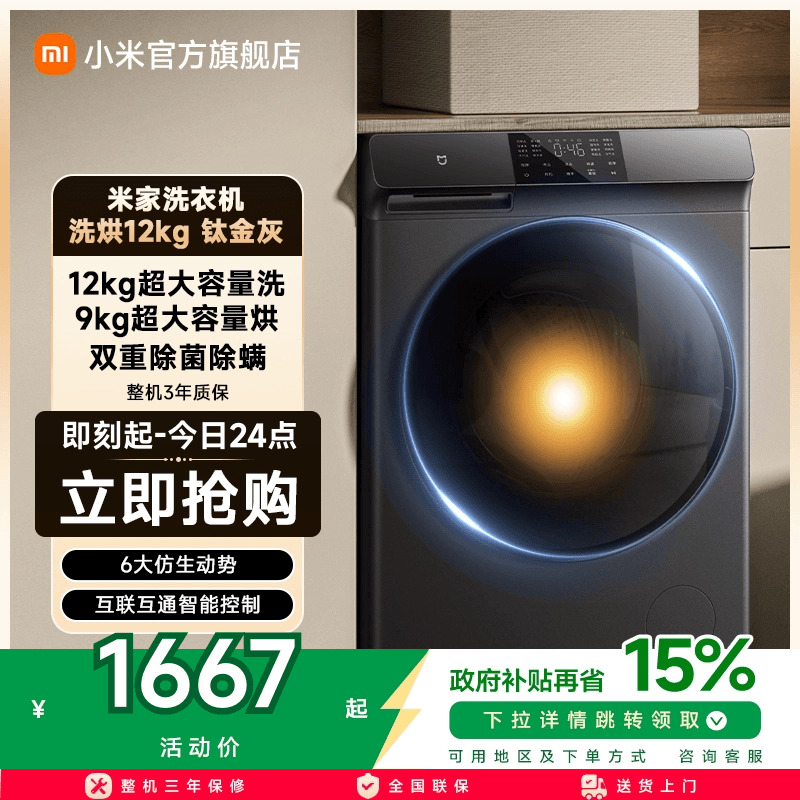 小米米家滚筒洗衣机12kg家用大容量全自动除菌变频洗烘干一体