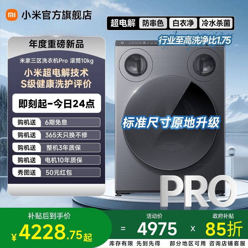 【重磅新品】米家三区洗衣机Pro滚筒三筒分区洗850mm标尺国家补贴