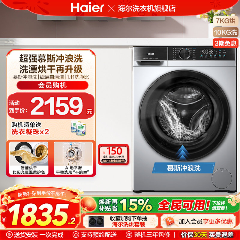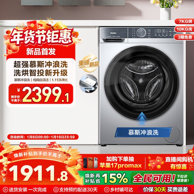 【政府补贴】海尔滚筒洗衣机洗烘一体家用全自动G10090BD12S
