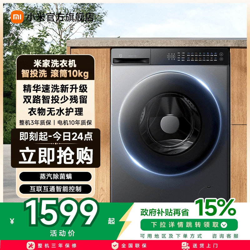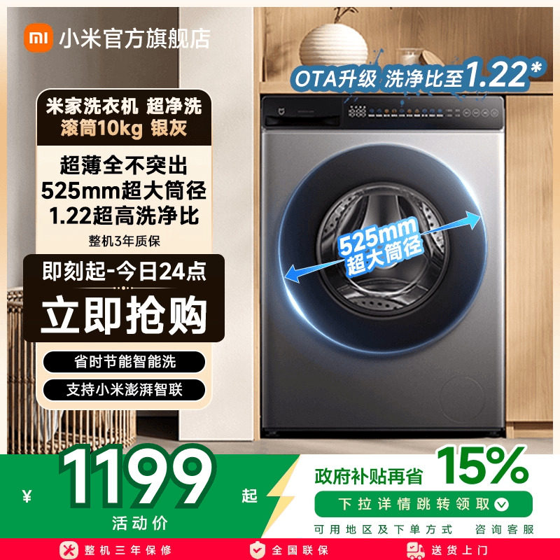 小米米家超净洗超薄全嵌滚筒全自动洗衣机10kg大容量家用官方