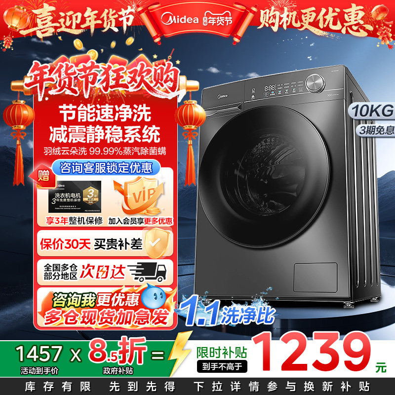 【新品上市】美的滚筒洗衣机10公斤大容量烘干一体全自动家用36T