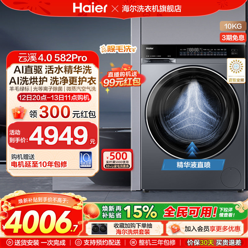 海尔云溪4洗衣机全自动家用10公斤大容量直驱滚筒超薄官方旗舰店