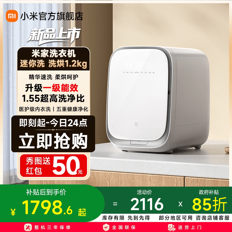 【一级能效】小米米家迷你洗烘一体1.2kg小全自动滚筒内衣洗衣机
