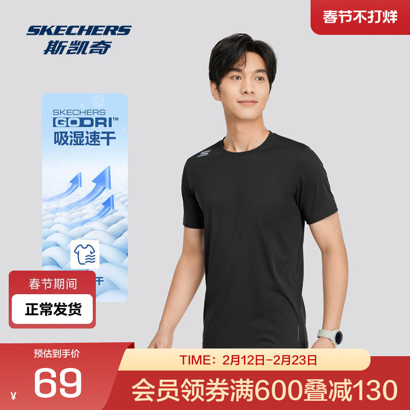 斯凯奇官方outlets男士速干短袖T恤衫日常户外运动圆领纯色简约