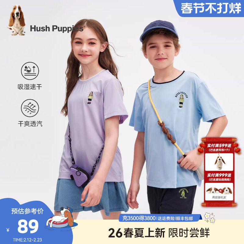 暇步士童装儿童圆领T恤衫26夏新款男童速干短袖女童休闲户外上衣