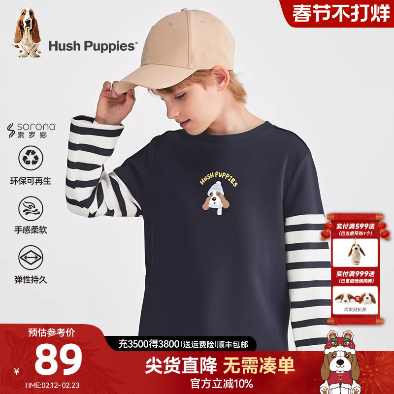 暇步士童装儿童t恤衫春秋新品女童学院风T恤男大童休闲宝宝圆领衫