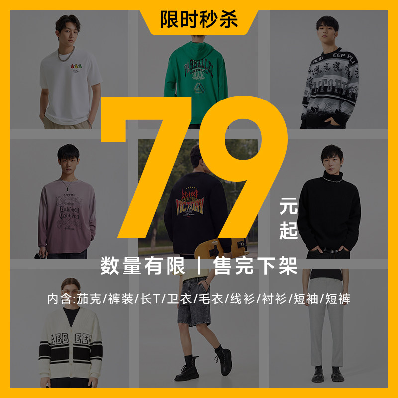 【特价79元起】卡宾奥莱男装圆领T恤卫衣外套毛衫衬衫长裤多品类