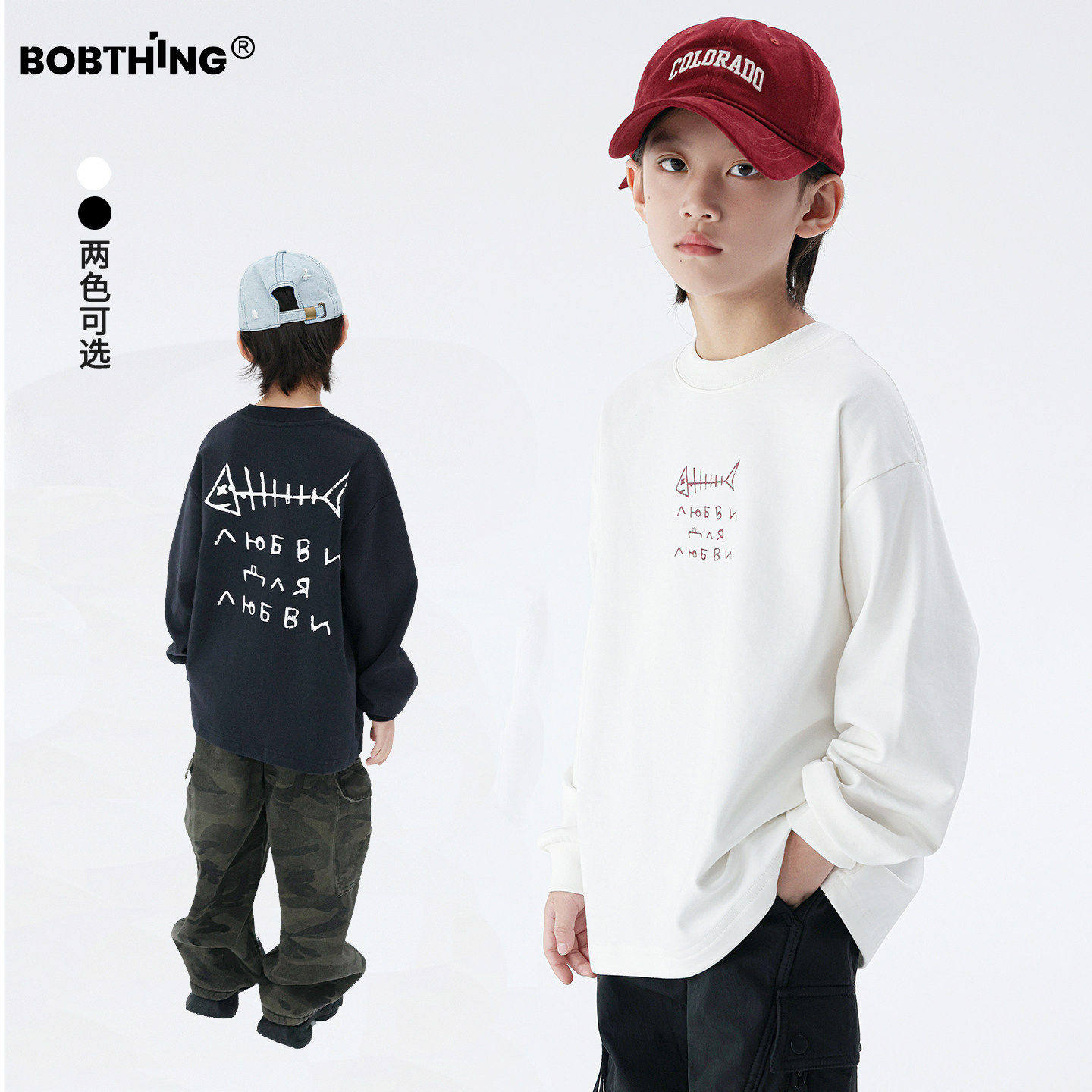 男童冬装潮酷鱼骨印花加厚长袖T恤衫圆领儿童体恤保暖打底衫童装