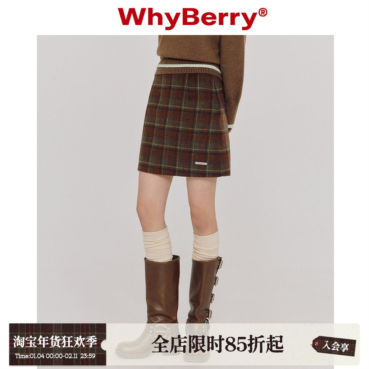 WhyBerry 23AW“藏在石榴里”红棕格小短裙秋冬半身裙复古英伦风