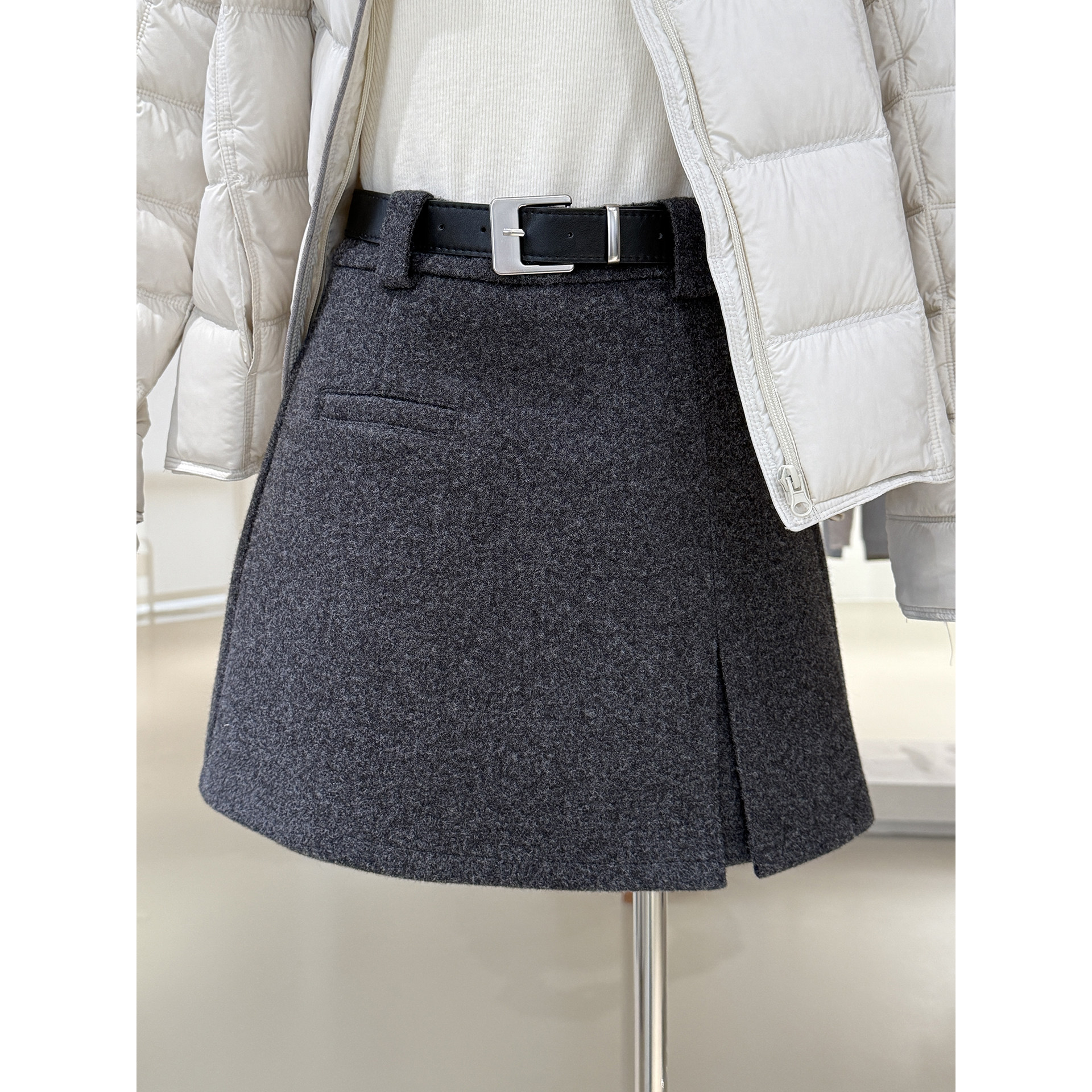 大牌质感通勤百搭A字毛呢短裙秋冬新款韩版开衩设计半身裙配腰带