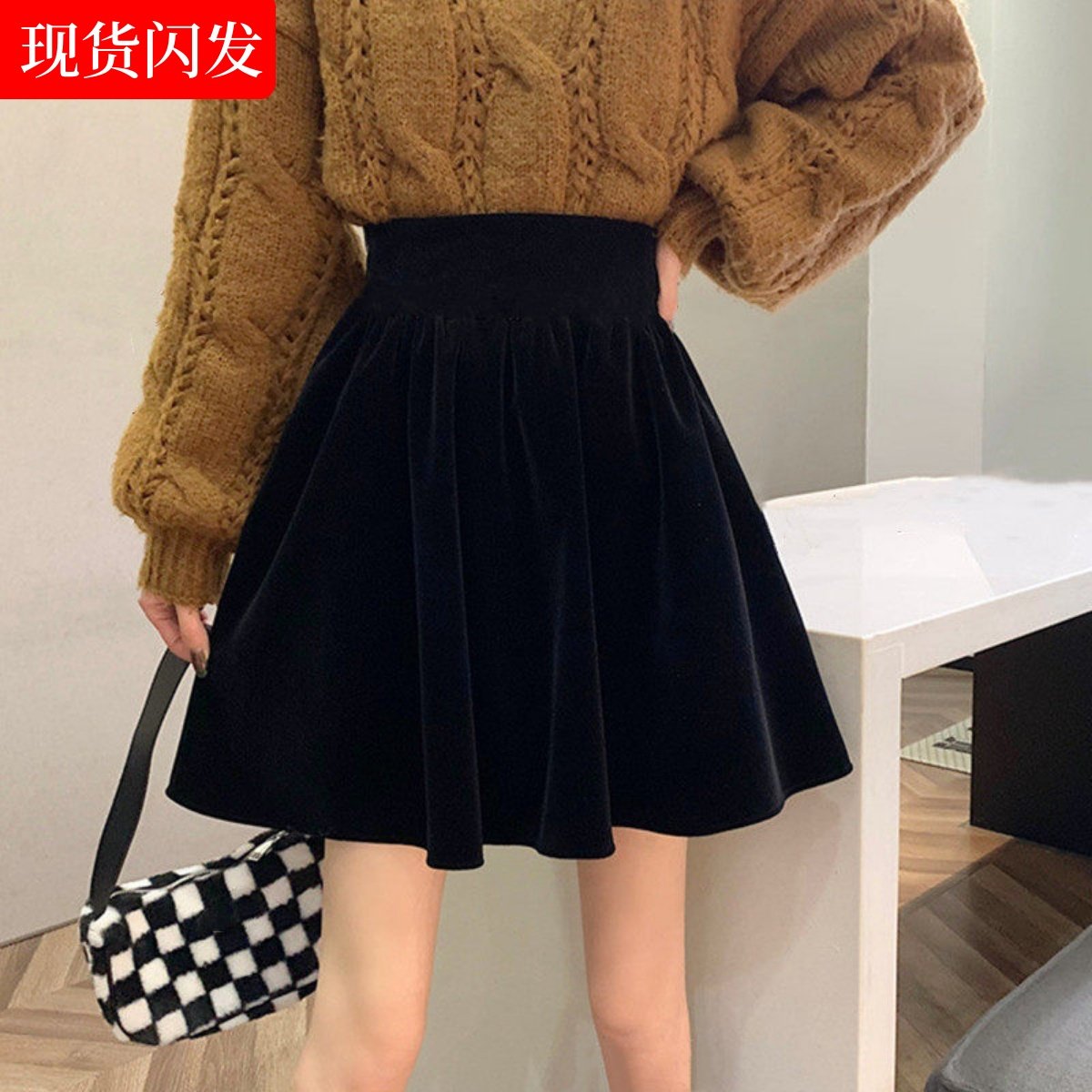 锦茗 春季新款丝绒高腰半身裙女士chic时尚百搭短裙秋冬A字