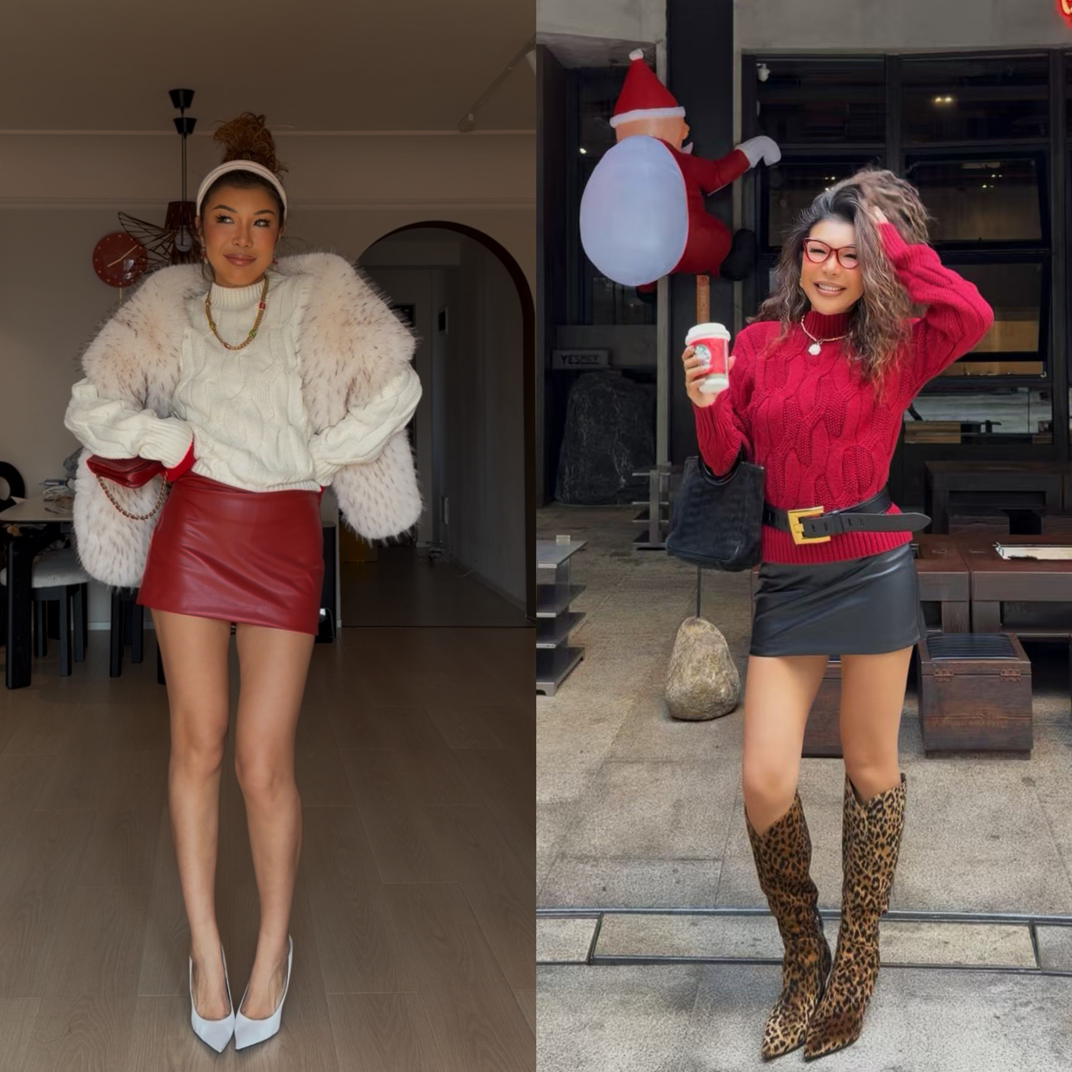 格子毛呢半身短裙秋冬新款搭配富家千金过年圣诞节女红色百褶裙子