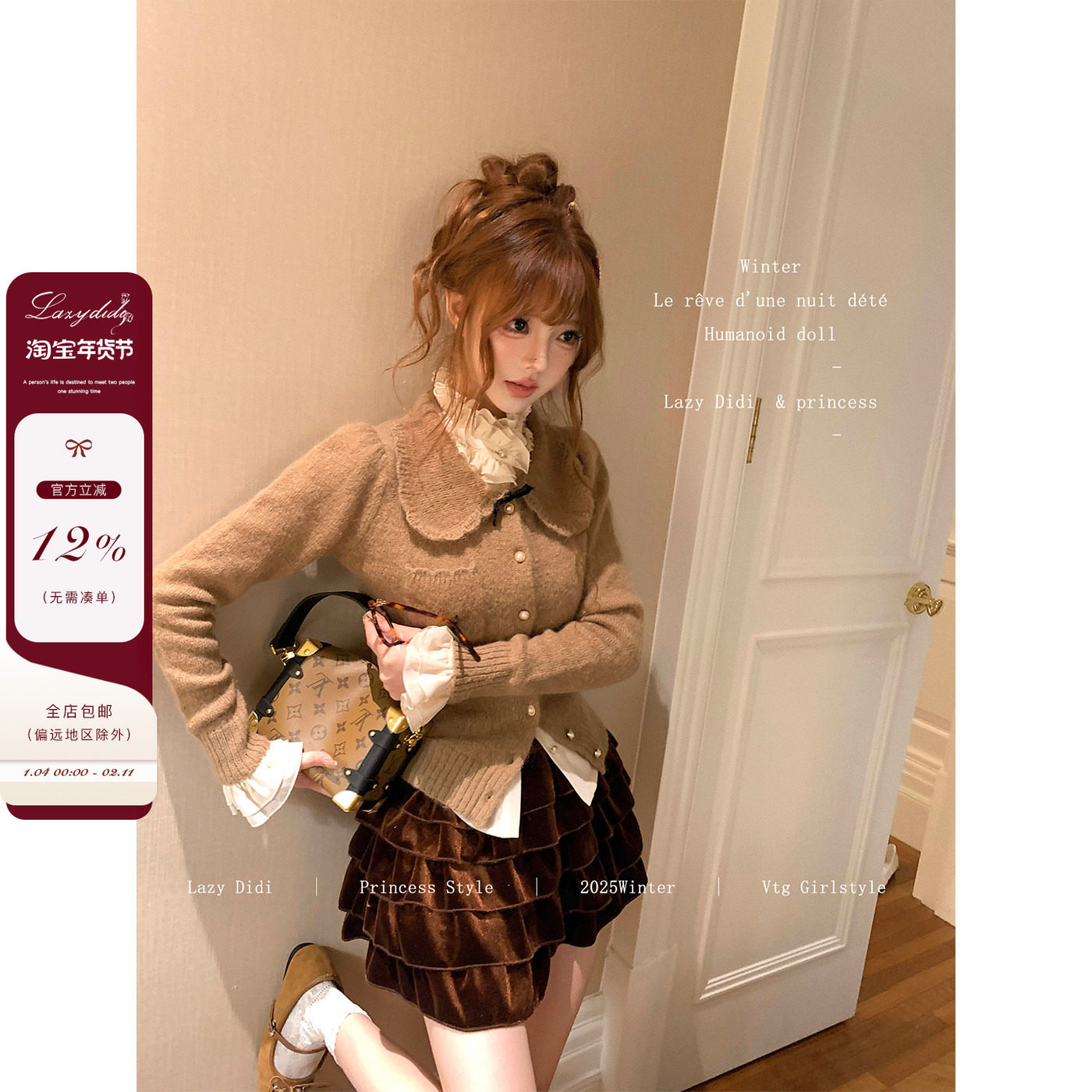 Lazy Didi初雪夕幕 光感丝绒蛋糕短裙秋冬甜美高腰多层半身蓬蓬裙