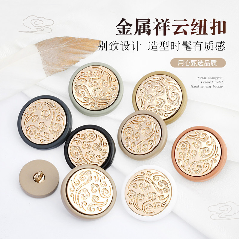 彩色金属祥云双拼纽扣树脂复古大衣风衣女外套装饰扣西装金色扣子