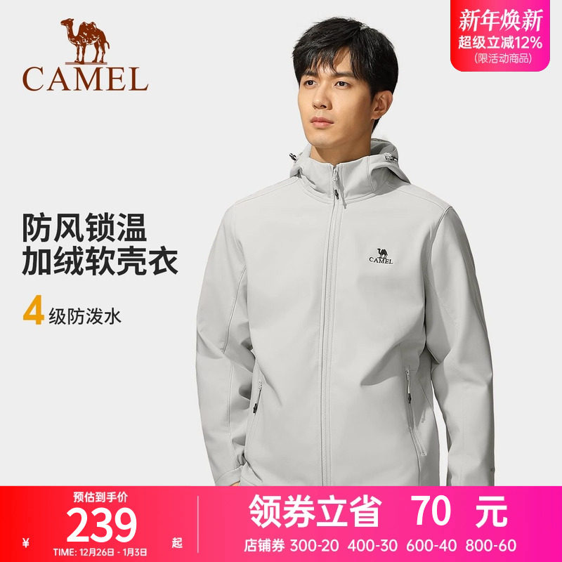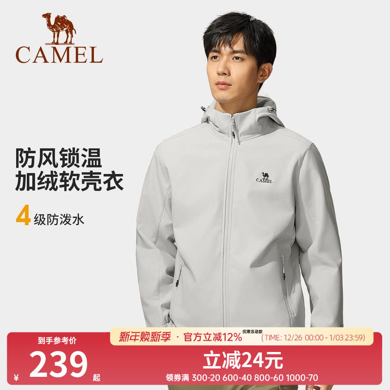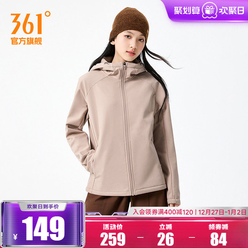 骆驼运动外套女2025秋冬新款连帽风衣防水防风薄绒休闲女装夹克