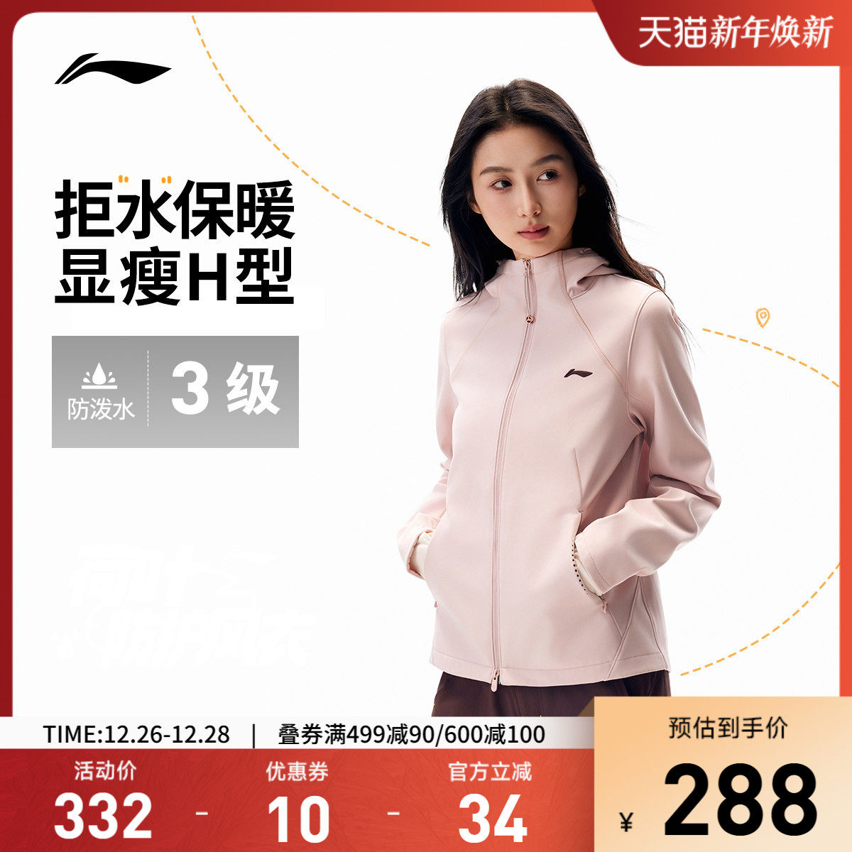 李宁外套女秋冬新款开衫外衣上衣长袖连帽夹克薄宽松户外运动风衣