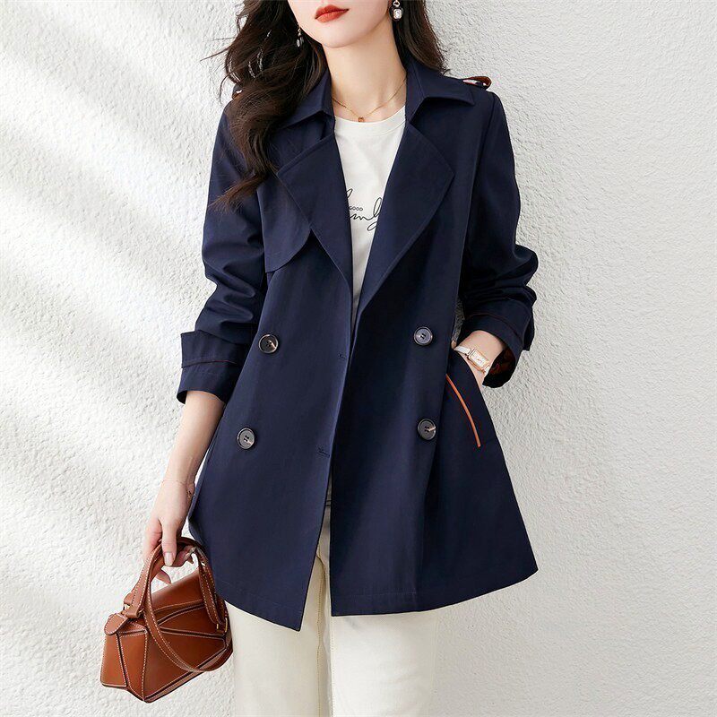 奈格薇儿小个子英伦风衣外套女春秋2025新款气质双排扣中长款大衣