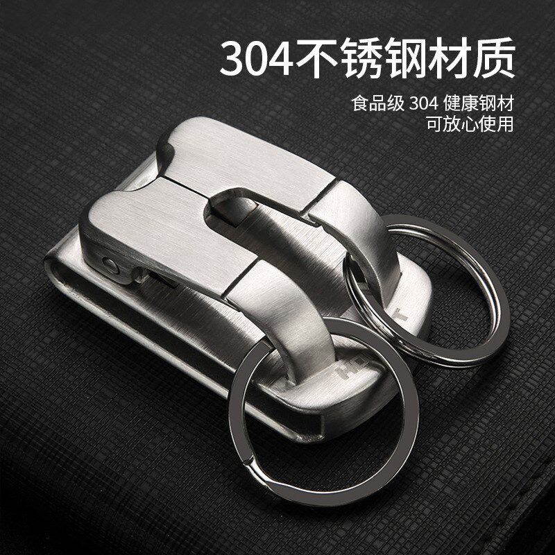 百诚不锈钢穿皮带钥匙扣男士腰挂双扣高档锁匙扣腰式钥匙圈环商务