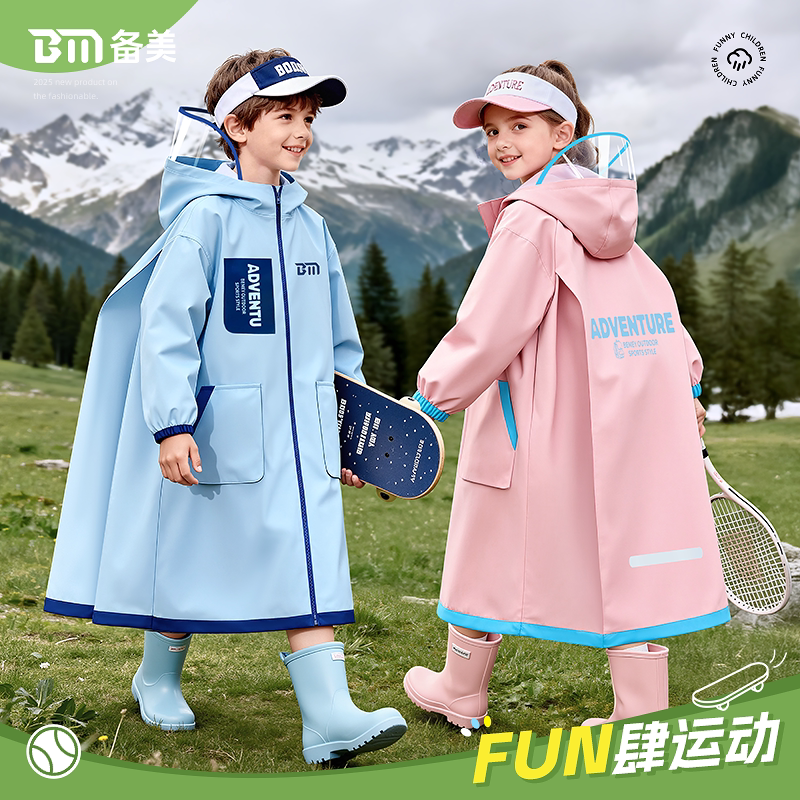 备美儿童雨衣小学生上学专用全身防暴雨男孩女童带书包位2026新款