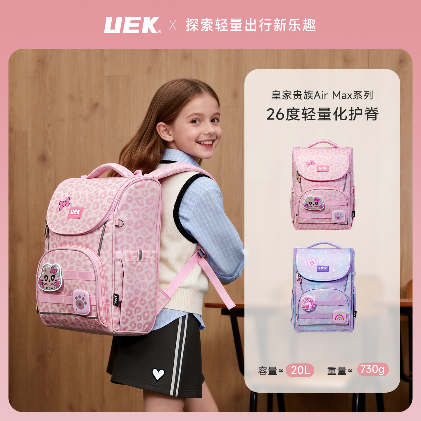 uek贵族儿童书包小学生女童双肩书包一到四年级减负护脊2026新款