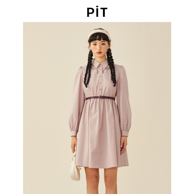 西町村屋法式连衣裙女装秋冬新款气质简约绑带叠片长裙AD8502021